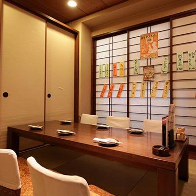 最大6名様の半個室、最大8名様の仕切り間テーブル。人数様に応じてご宴会対応いたします◎